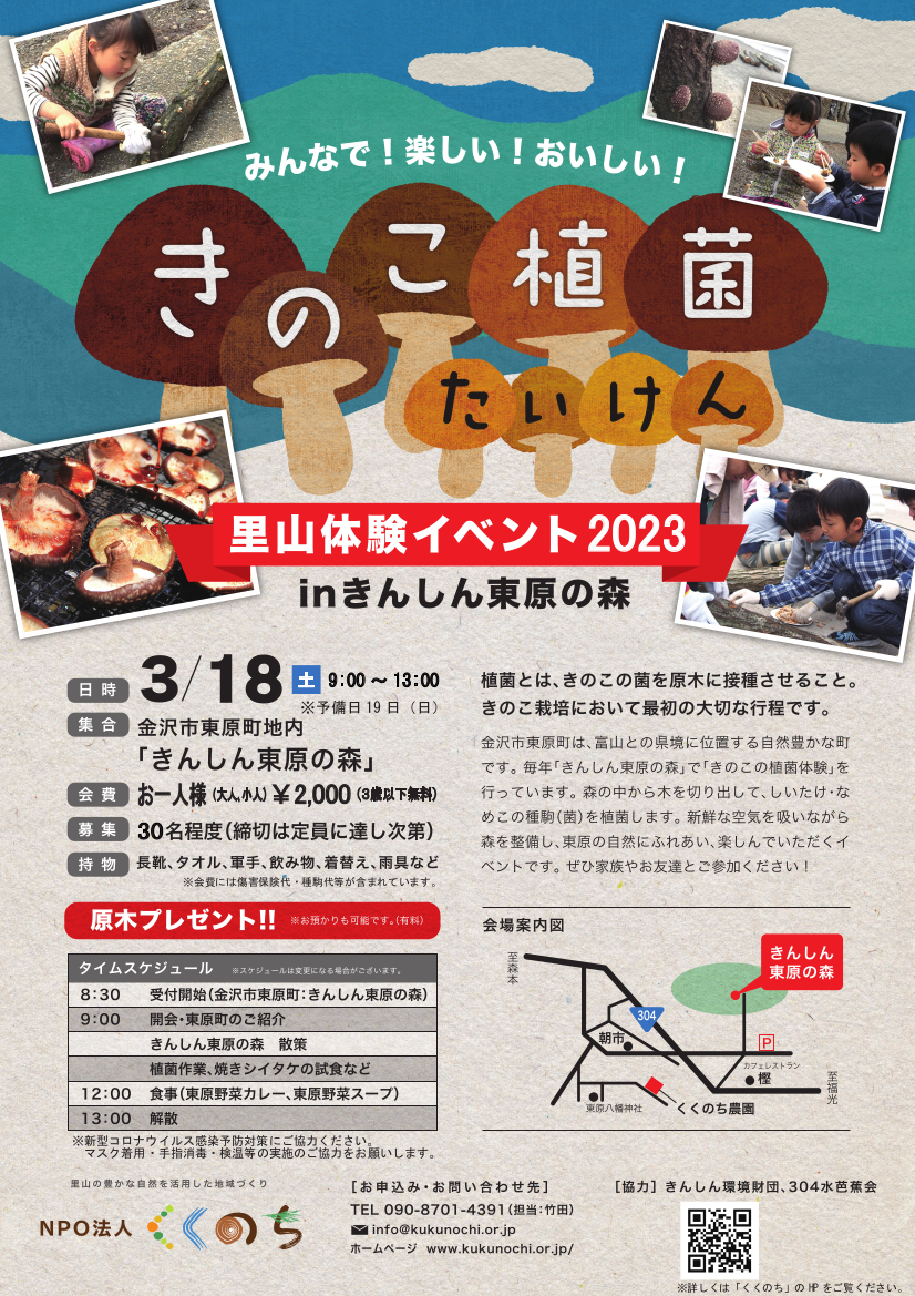 【きのこの植菌体験 参加者募集 ~春の金沢 里山自然体験イベント~】