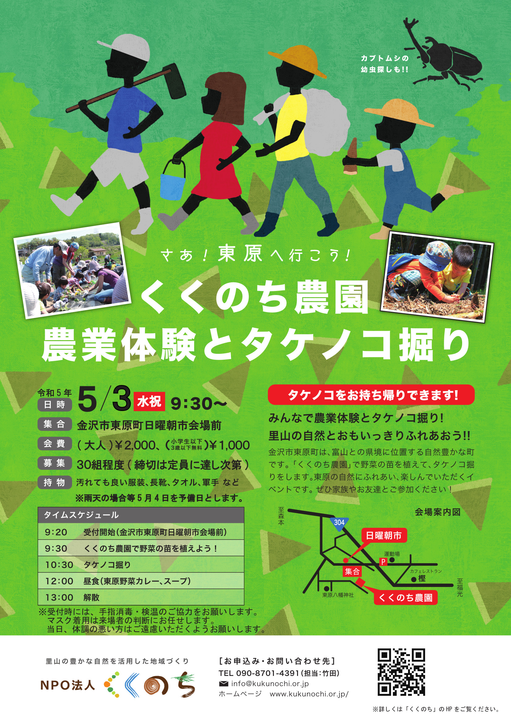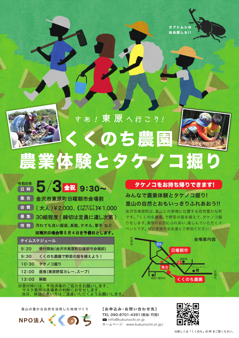 すっかり春らしい温かい季節となりました。今回は、人気の 春の金沢 里山自然体験イベント「農業体験とタケノコ掘り」のご案内です。