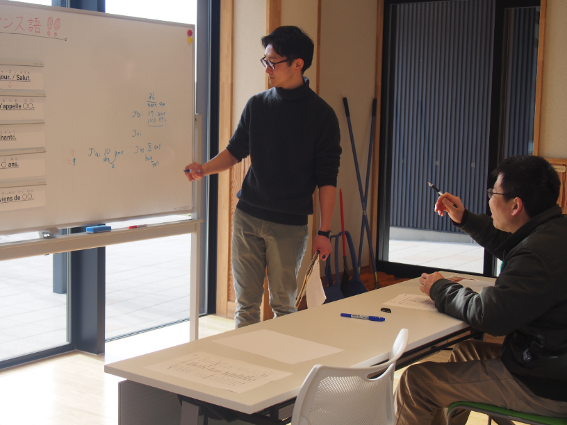 またフランス語については、フランス・ノルマンディ地方のルーアンに留学していた金沢市三谷地区 地域おこし協力隊の 松田優樹 先生が講師をされました。