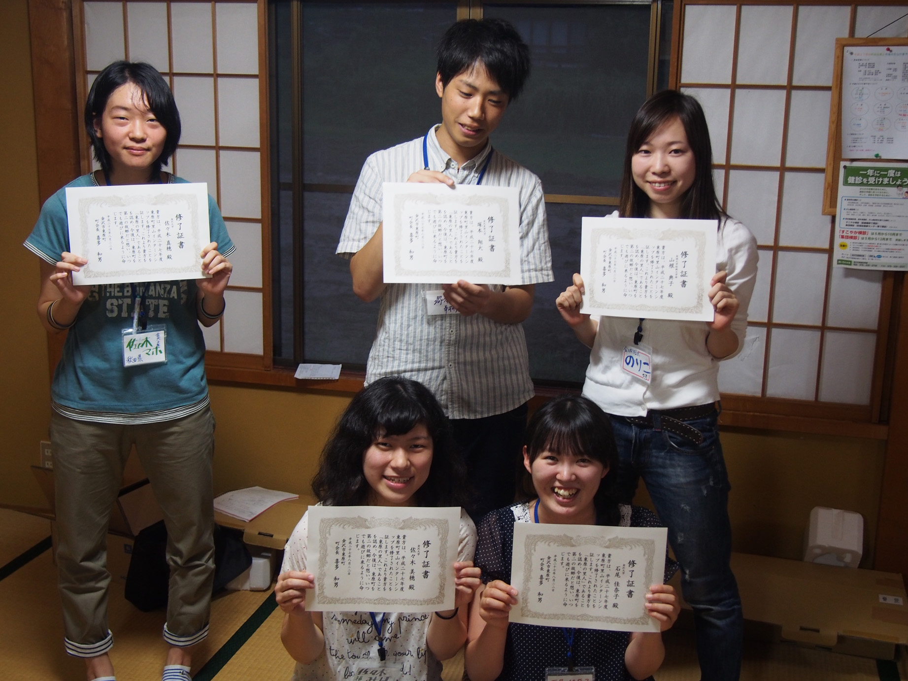 報告会には、1期生のインターン生も駆けつけてくれた中、無事、今年度のインターン生 も修了を認められ、「東原の里人」に任命されました。最終日は、心を込めた手紙を持って、お世話になった住民へお礼参り。