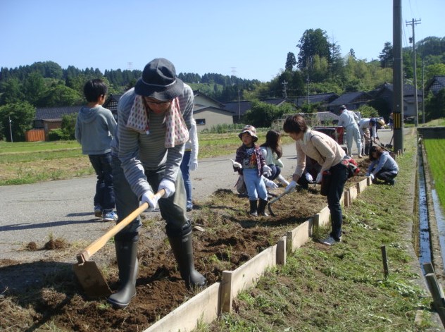 町内の農道の除草作業や花壇整備にコープいしかわ様で募っていただいた組合員さんに保全活動ボランティアとしてお手伝いしてもらいました。
